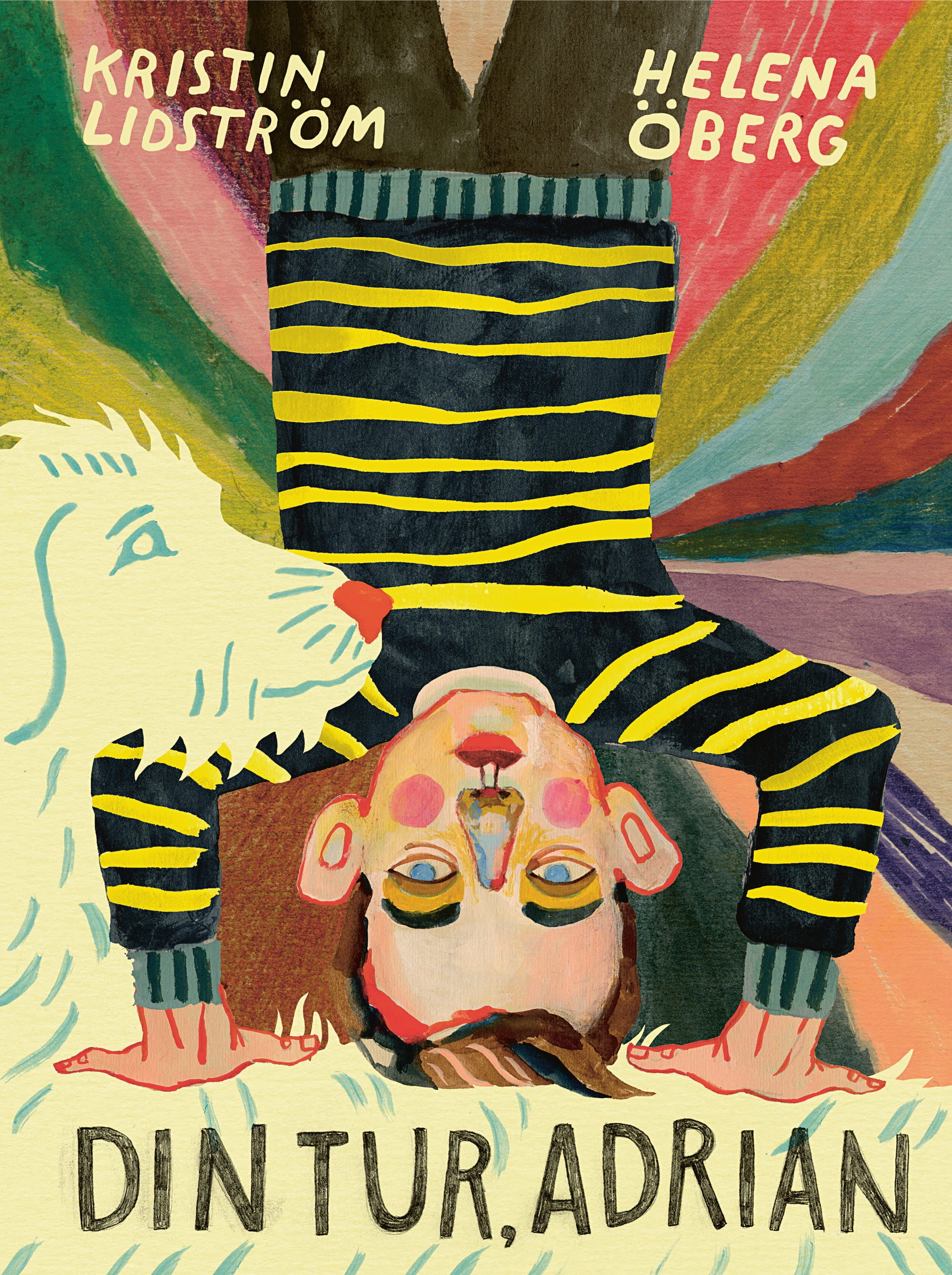 Din tur, Adrian är en stark 64-sidig bildberättelse om utsatthet, svårfångade stavelser och förväntningar svåra att leva upp till. Men det är också en skildring av fantasins kraft att förändra och innerlig vänskap.