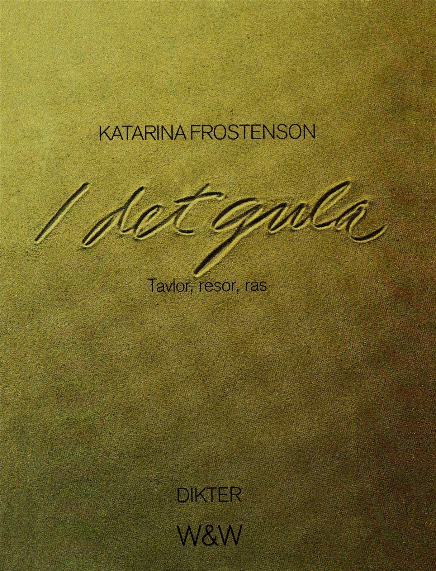 Katarina Frostenson är född i Stockholm 1953 och debuterade 1978 med diktsamlingen I mellan. Det poetiska språket är Katarina Frostensons signum, även när hennes texter öppnar sig mot andra litterära former, som prosa och dramatik. Katarina Frostenson har belönats med en rad prestigefulla priser, bland annat Nordiska rådets litteraturpris, och 1992 valdes hon in i Svenska Akademien. Diktsamlingen I det gula : Tavlor, resor, ras gavs ut för första gången 1985.